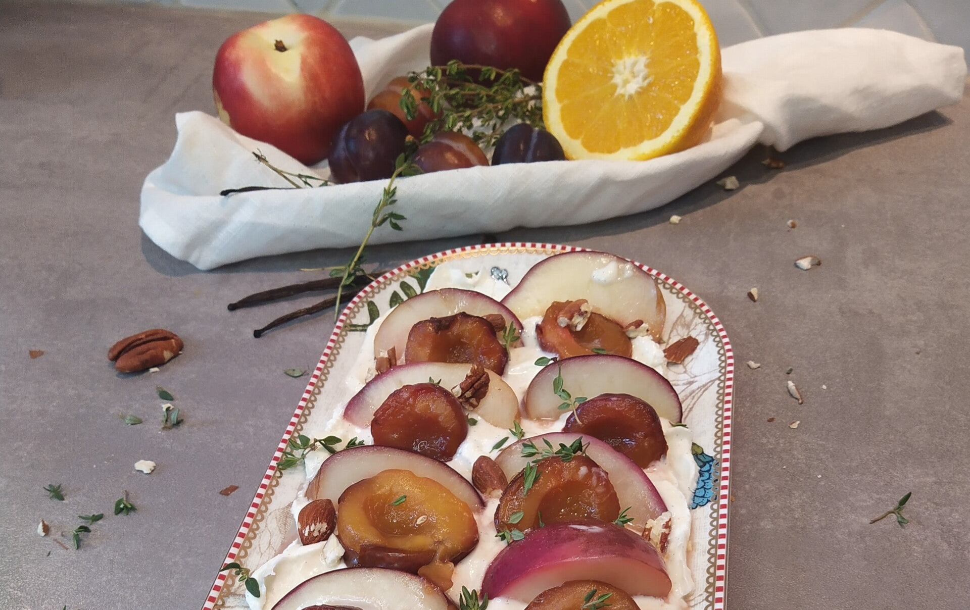 Pak je kans en geniet van dat lekkere zoete zomerfruit. Voor je het door hebt is de zomer voorbij. Ik snelde dus naar de Appie om nectarines en pruimen te halen. Ik stoofde het in mijn Brick van Bricknic (heb je die niet, gebruik dan een ovenschaal) en serveerde het met zoete frisse room.