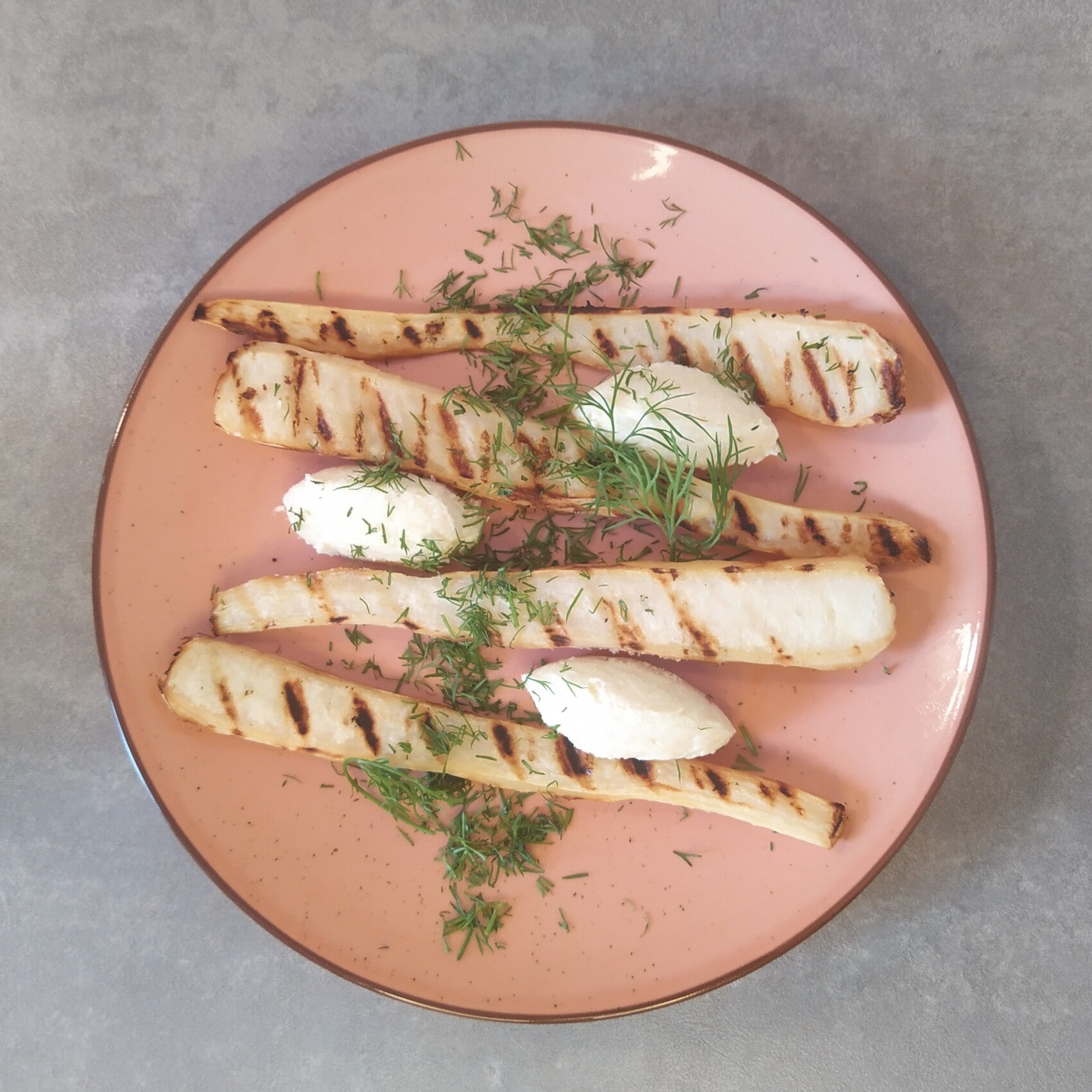 Pastinaak - gegrild én in botercrème - naar recept van Seppe Nobels en Peter de Clerq uit het boek Grillmasters. Dat was lekker zeg.